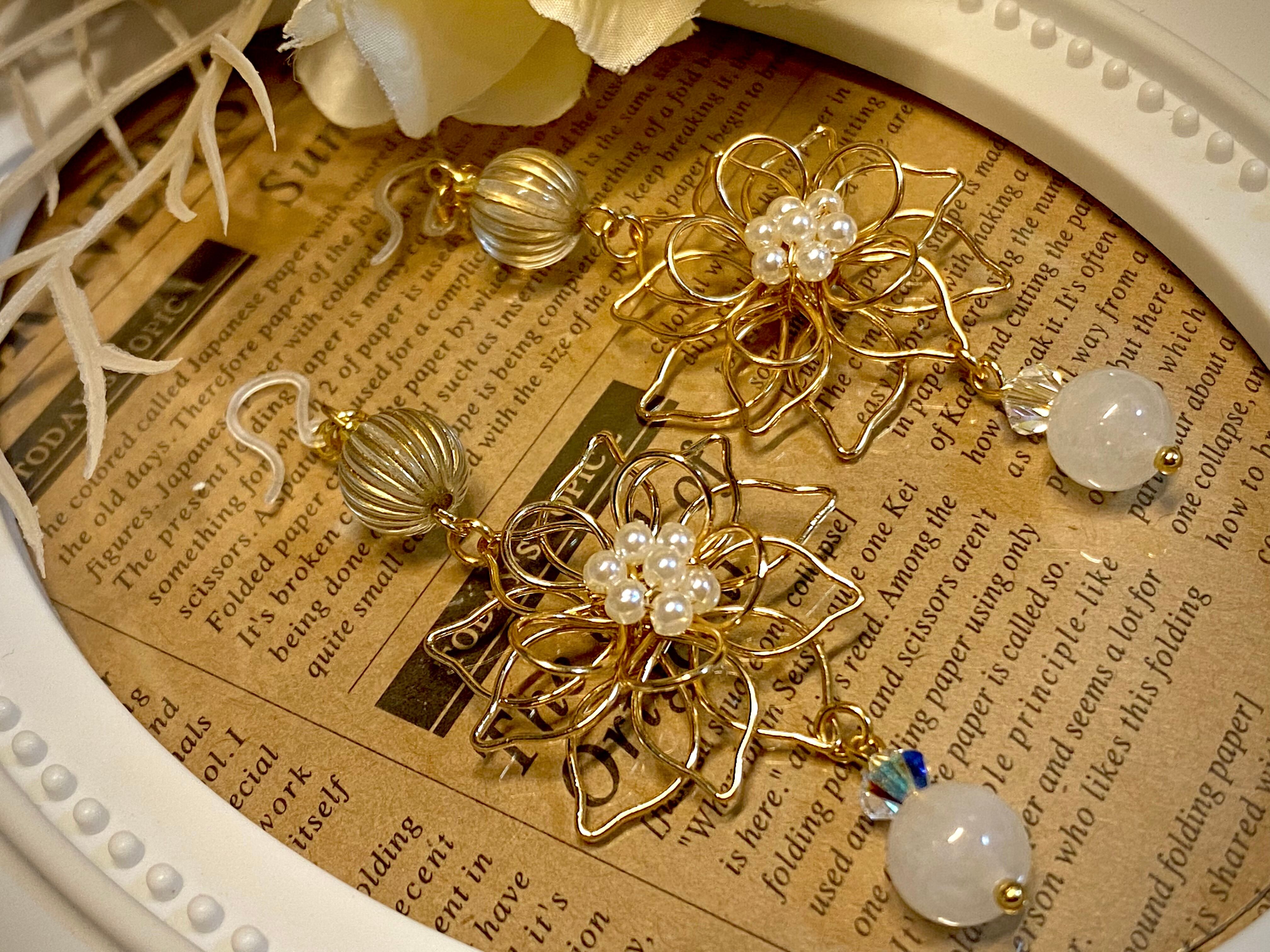 大ぶりのお花ピアスになります。
