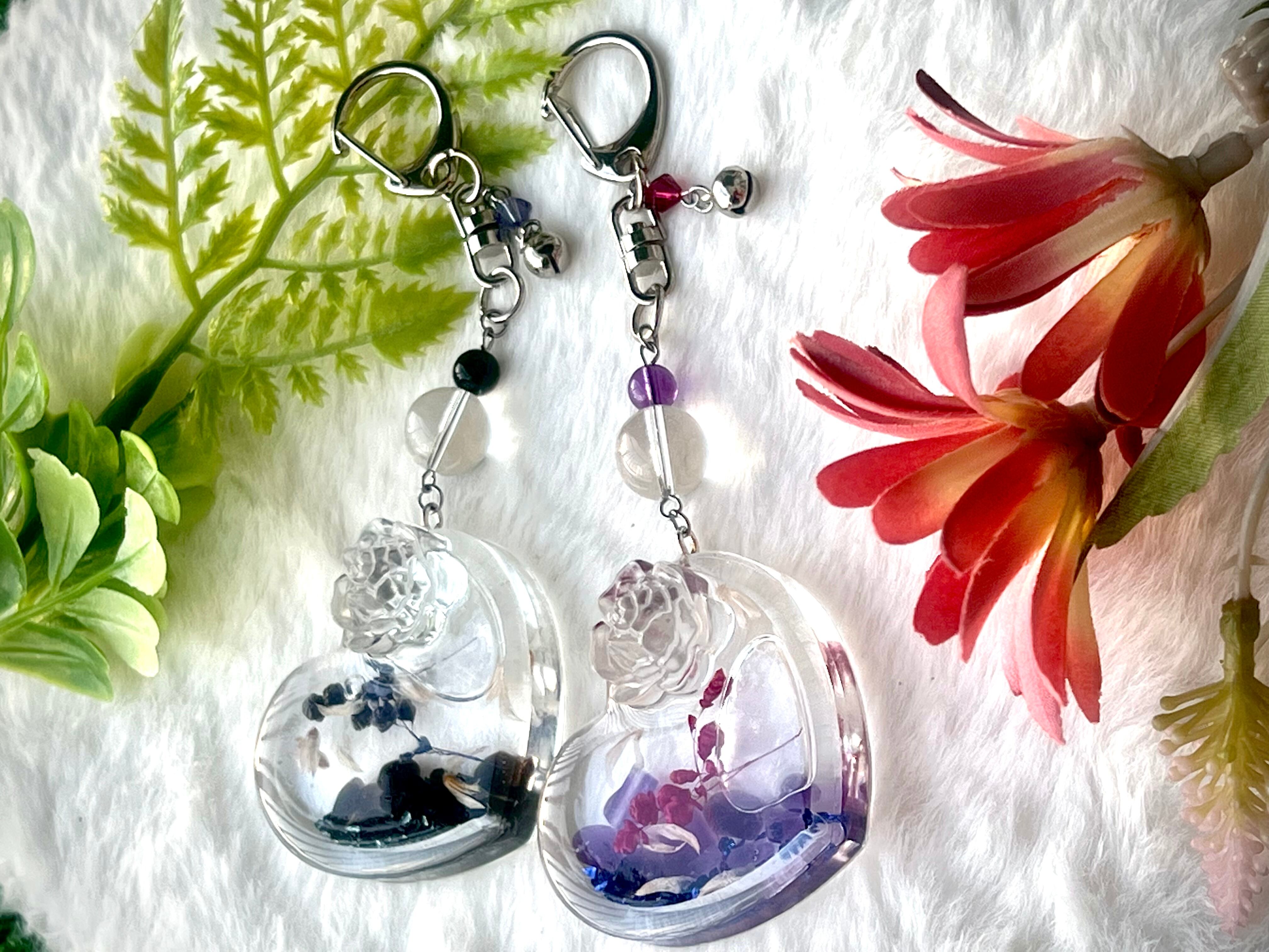 透明感のあるハートシェイカーと天然石で